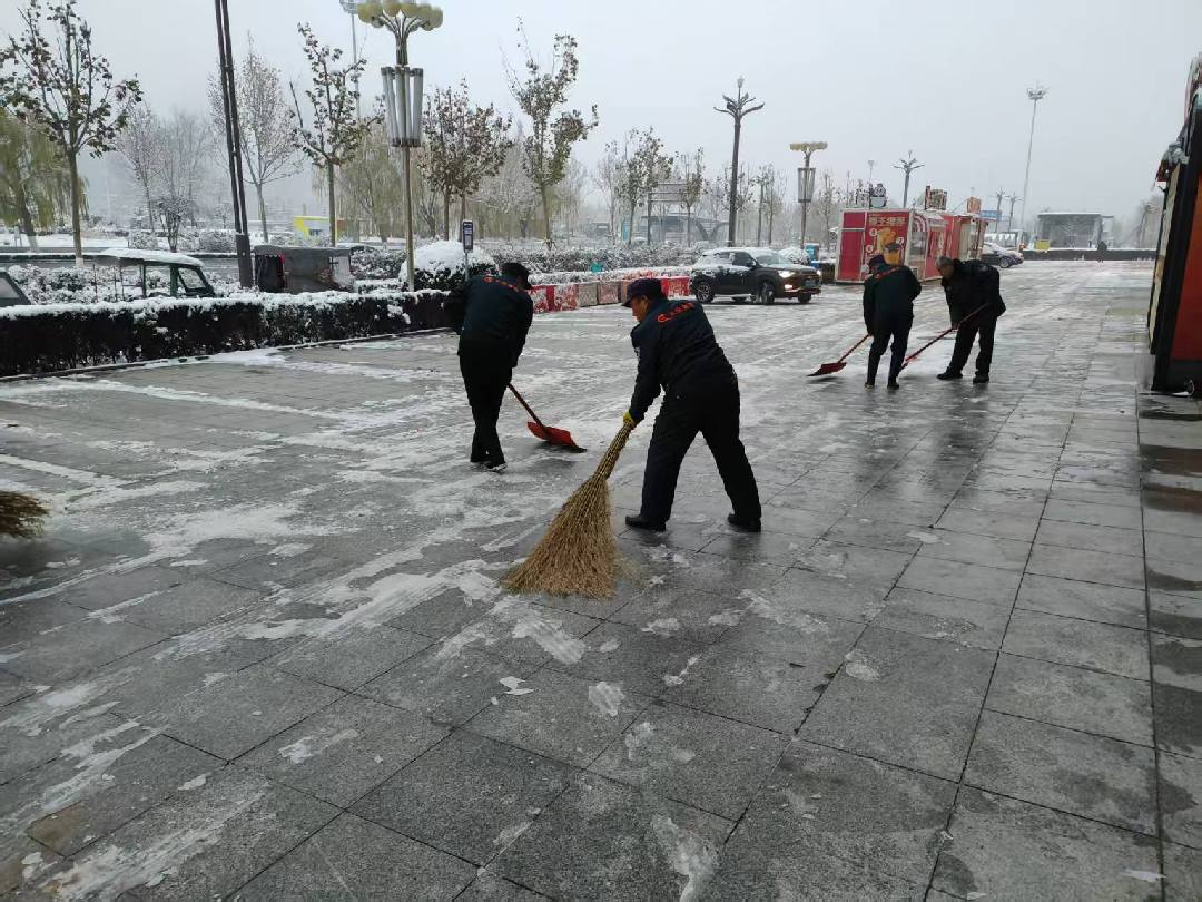 華百?gòu)V場(chǎng)及長(zhǎng)田物業(yè)華百項(xiàng)目部也迅速進(jìn)入掃雪行動(dòng),大家手持鐵鍬、掃帚、除雪鏟等工具,分工明確、協(xié)作有序,重點(diǎn)對(duì)廣場(chǎng)入口、停車(chē)場(chǎng)出入口、主干道等關(guān)鍵區(qū)域的積雪進(jìn)行清掃。盡管天氣寒冷,雪花仍在飄落,但員工們熱情高漲,揮舞著工具的身影在雪景中構(gòu)成了一道亮麗的風(fēng)景線。經(jīng)過(guò)清掃,華百?gòu)V場(chǎng)內(nèi)外積雪被徹底清除干凈,清潔的環(huán)境、暢通的道路,讓每一位踏入廣場(chǎng)的市民都能安心享受舒適、安全的周末時(shí)光,也在寒冬中傳遞出一份溫暖、貼心的服務(wù)誠(chéng)意。