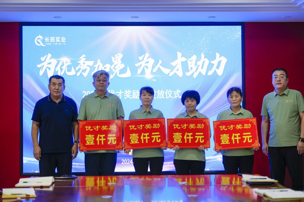 8月26日,長(zhǎng)田實(shí)業(yè)開(kāi)展了2024年優(yōu)才獎(jiǎng)勵(lì)金發(fā)放儀式。今年,是公司連續(xù)第七年舉辦優(yōu)才獎(jiǎng)勵(lì)金的頒發(fā)儀式,共有四名員工獲得該獎(jiǎng)勵(lì),其中一人子女考取了本科,三人子女考取了研究生;長(zhǎng)田實(shí)業(yè)工會(huì)主席、副總經(jīng)理成峻志為他們頒發(fā)優(yōu)才獎(jiǎng)勵(lì)金。隨后黨支部書記、董事長(zhǎng)張勇與大家共同合影留念。